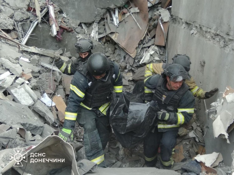 Rescuers have finished clearing the rubble after a Russian airstrike on a high-rise building in Kostyantynivka (Donetsk region) on May 7.