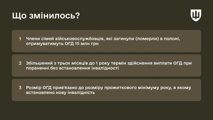 A one-time cash payment of UAH 15 million can now be received by family members of servicemen who died in captivity during martial law — now the cause of death of the soldiers will not affect this. However, the law does not apply to the families of those soldiers who surrendered to captivity voluntarily.