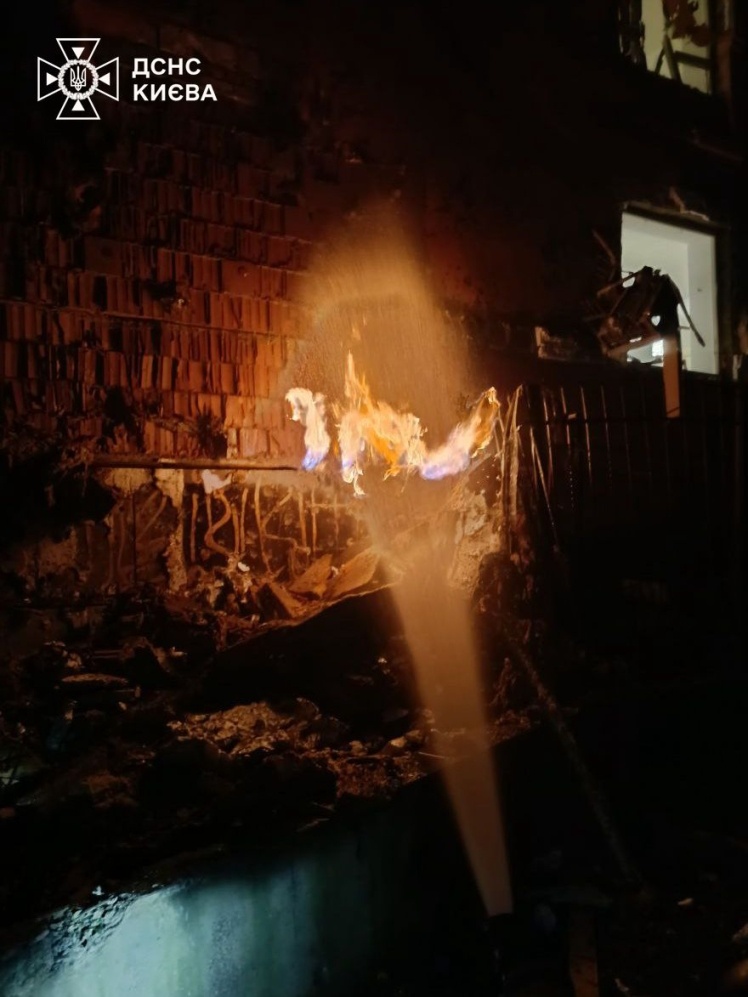 In total, the consequences of the attack were recorded in 27 places in the capital. In the Svyatoshynsky district, the entrance to a residential building was destroyed. There were also fires in several non-residential buildings.