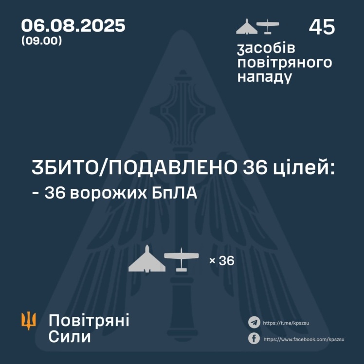 On the night of August 6, the Russian army attacked Ukraine with 46 Shahed attack UAVs and simulator drones of various types. Ukrainian air defenses neutralized most of them, but there were hits.