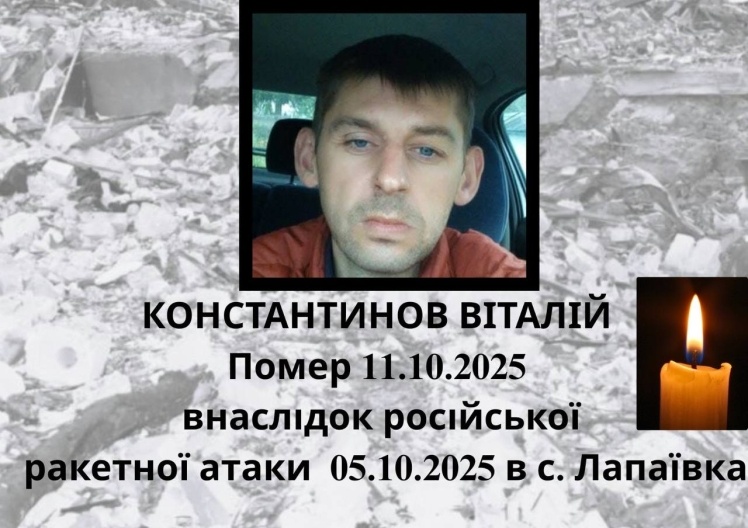 Vitaliy Konstantinov (46), who was injured in a Russian missile strike, died in hospital on October 11. Four other members of his family died at the scene.