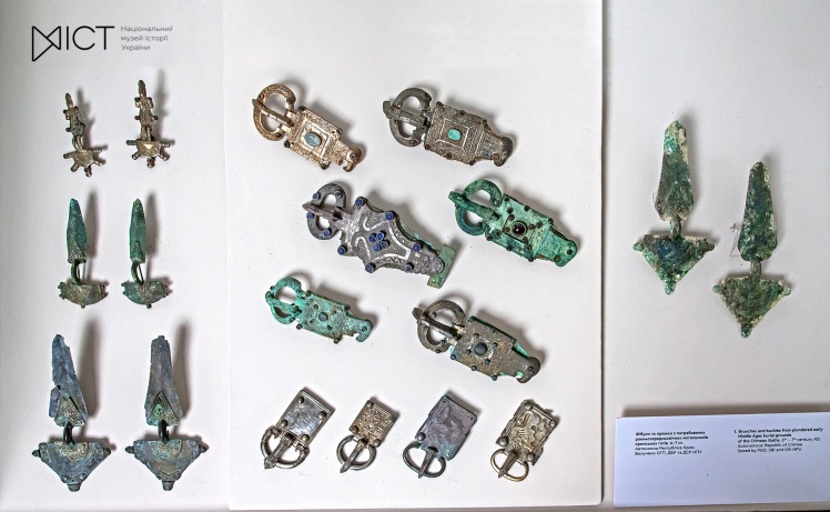 Of particular interest are details of a womenʼs costume, fibulae and eagle-headed buckles of the Goths of the 6th-7th centuries AD from Crimea, and antique red-figure pottery from the 4th century BC.