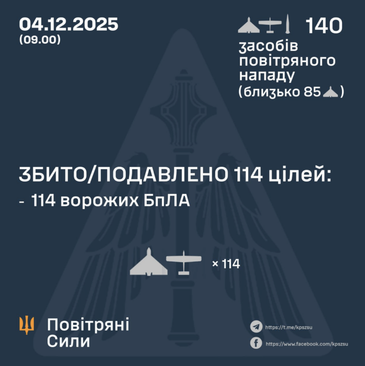 Air defenses neutralized 114 enemy drones in the north, south, and east of the country. The largest number of "Shaheds" flew — 85.