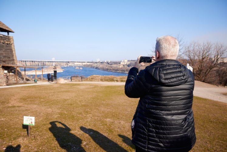 “You know, they are all Russified, but they are no less patriots than those in the West,” he says. We stand on the bank of the Dnipro River and try to see “Khortytsia”. He assures us that it is there, but we can’t see anything.