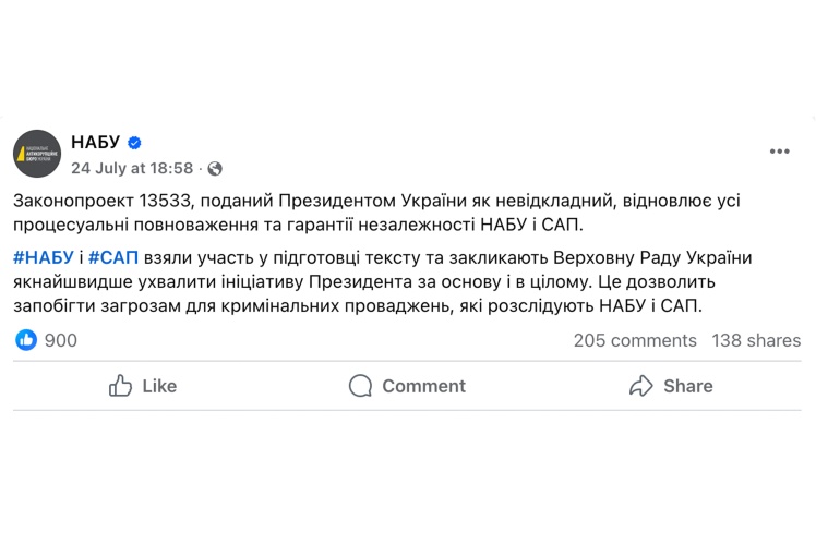 NABU and SAPO supported the presidentʼs bill, which they themselves wrote.