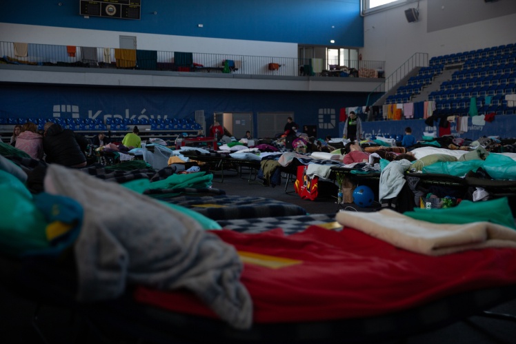 Temporary shelter for Ukrainian refugees on the outskirts of Przemyśl, March 5, 2022.