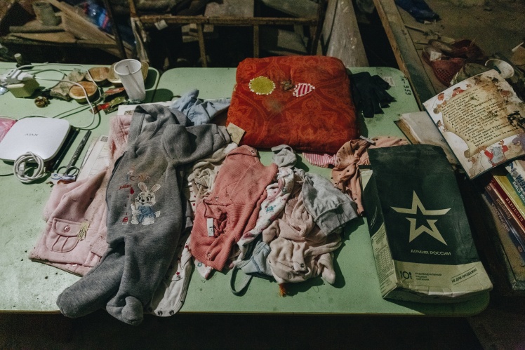 There were a lot of toys and things left in the basement. The youngest child there was a month and a half old. The Russians brought Russian newspapers. They promised to give baby food and diapers if the locals sang the Russian anthem and recorded a propaganda video.