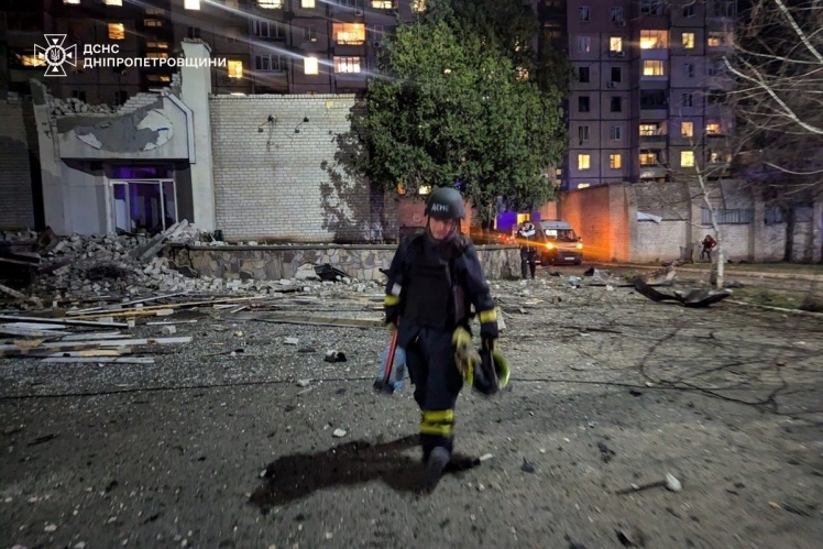 У ДСНС додали, що часткових руйнувань зазнала двоповерхова будівля цивільної інфраструктури. Фахівці продовжують обстежувати місце атаки.