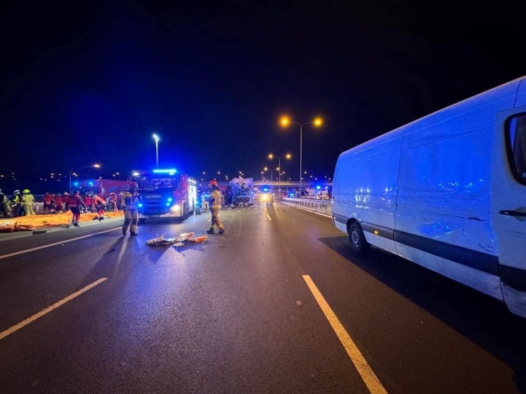 На швидкісній автомагістралі S2 біля аеропорту імені Фредеріка Шопена у Варшаві перекинувся міжміський автобус, який перевозив 26 людей — серед них були українці.