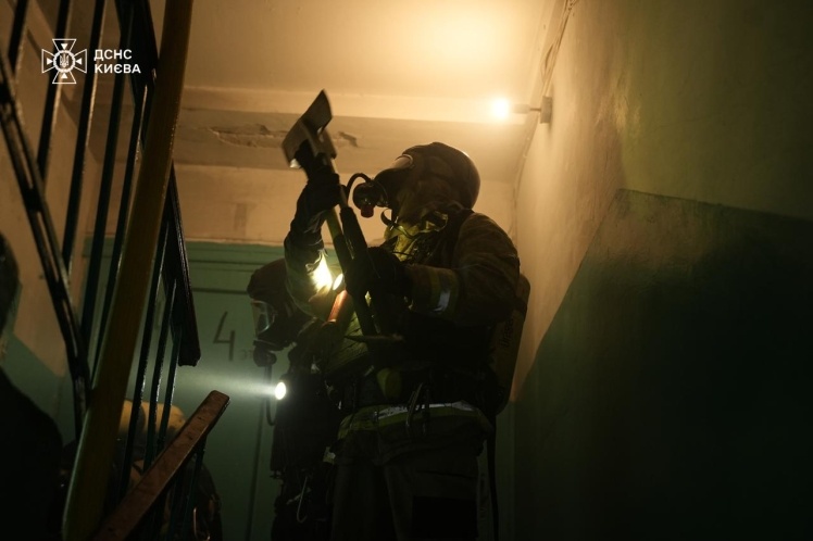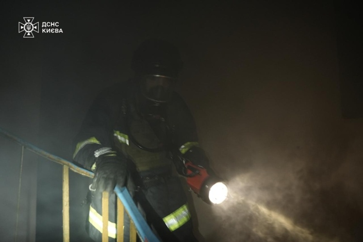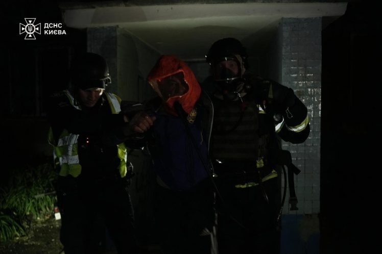 У Солом’янському районі виникла пожежа на рівні 4 та 5 поверхів у житловій пʼятиповерхівці, рятувальники її вже загасили. За допомогою рятувального капюшона врятували чоловіка — попередньо, він отруївся продуктами горіння. У цьому районі постраждали 7 людей, ще одну людину врятували. Тут розгорнули штаб за адресою вул. Віталія Скакуна, 14.
