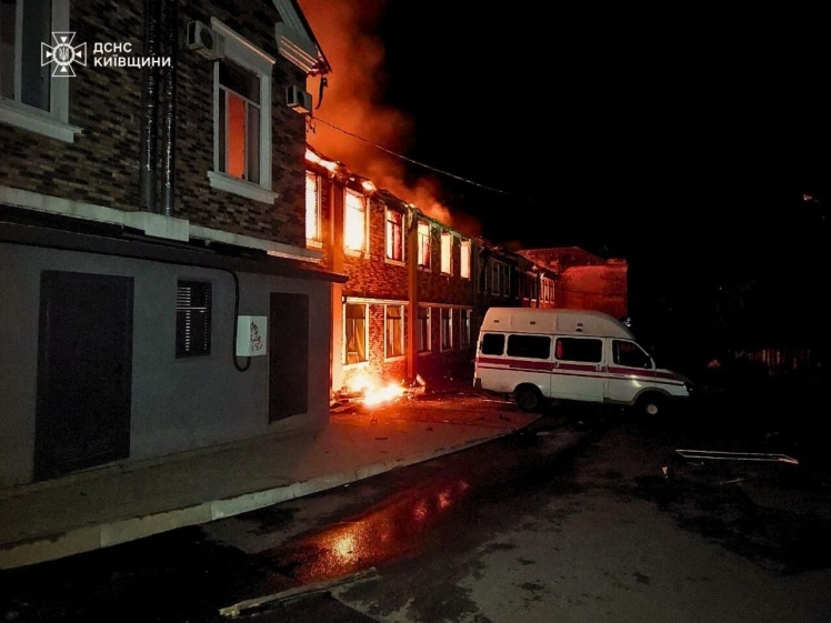 У Білій Церкві, що на Київщині, одна людина загинула, ще восьмеро дістали поранення. Під час ліквідації наслідків обстрілу двоє рятувальників зазнали травм. Постраждала житлова та медична інфраструктура. Рятувальники евакуювали шість тяжкохворих пацієнтів. Триває ліквідація пожежі площею 1 500 кв. м.