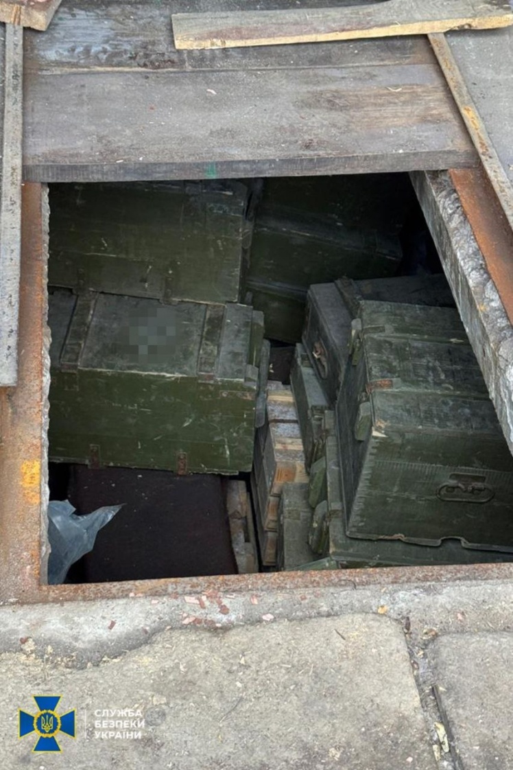 Нелегальна схованка була в оглядовій ямі одного з гаражних кооперативів Харкова. Під час обшуків у цьому приміщенні правоохоронці виявили та вилучили значну кількість боєприпасів, зокрема: міни різного типу, гранати, реактивні протитанкові гранатомети й снаряди для них, тротил, термобаричні запали, набої для автоматів і кулеметів.
