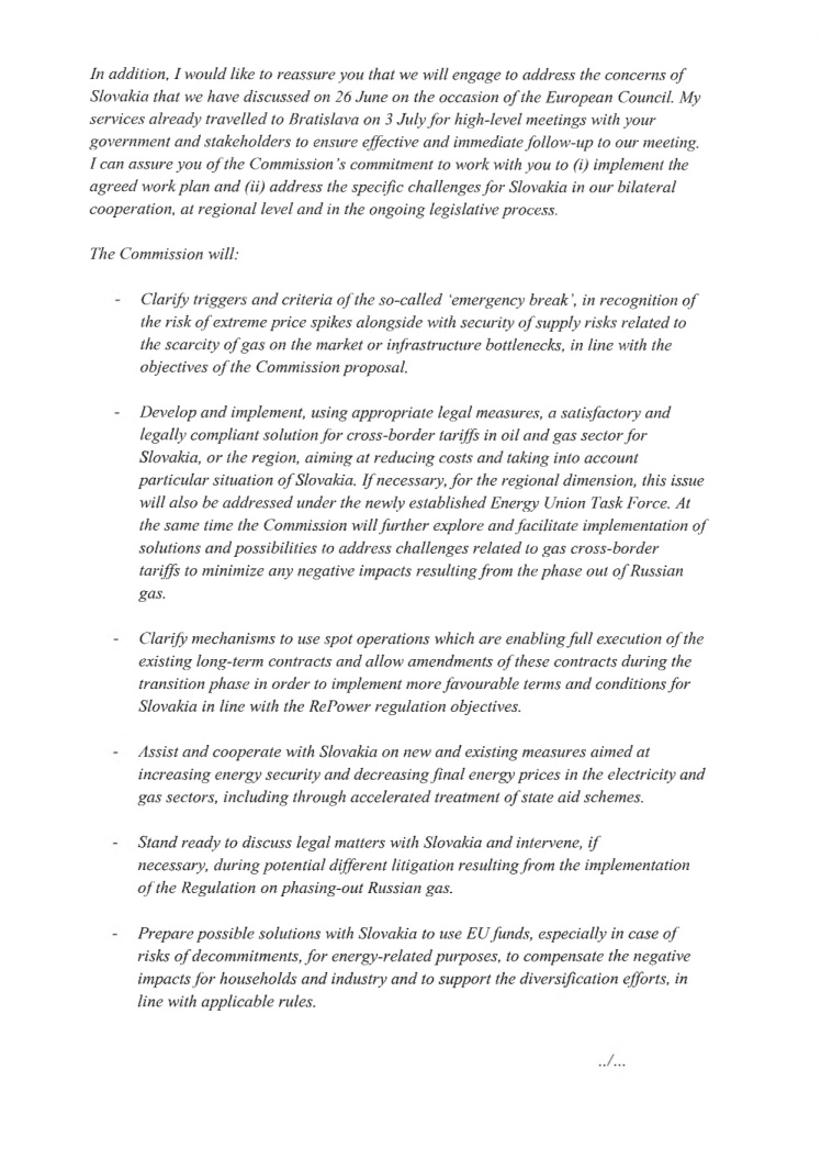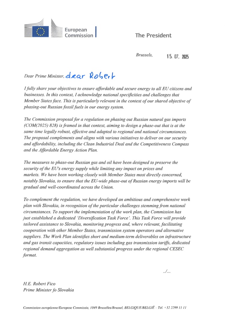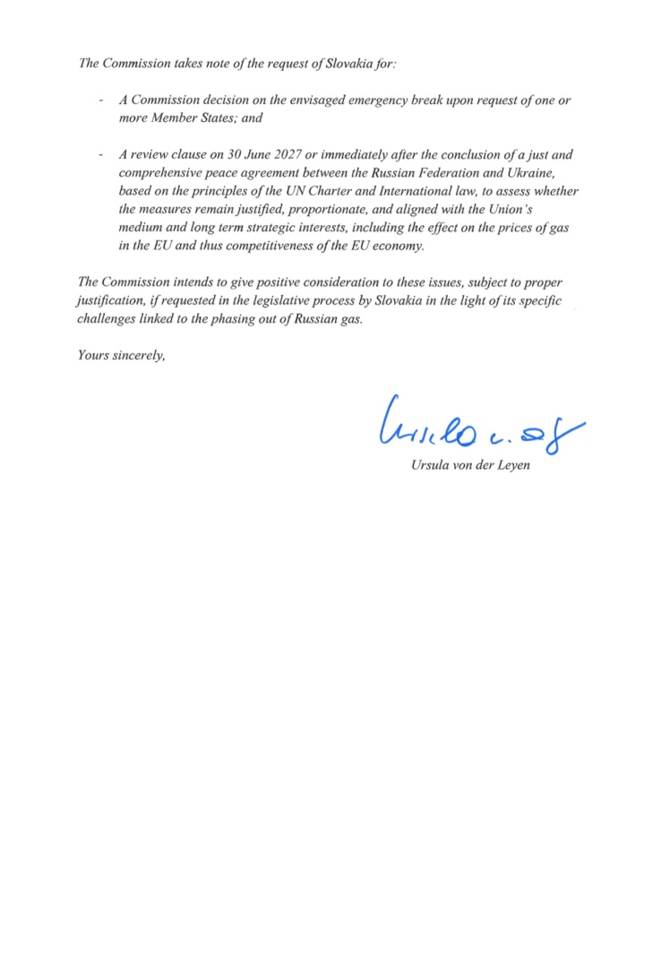 Словацький премʼєр також опублікував відповідь Європейської комісії на зауваження Словаччини про те, що ЄС хоче зупинити постачання російського газу з 1 січня 2028 року. Про цю відповідь він писав ще вдень.