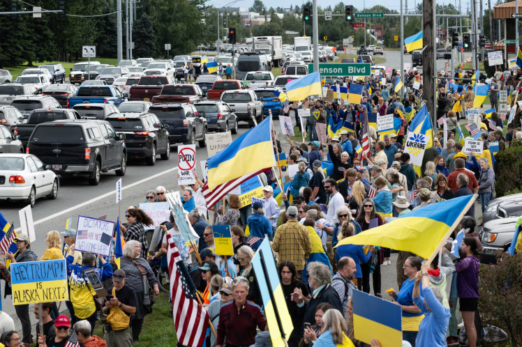Сотні жителів Аляски зібралися 14 серпня в Анкориджі на знак протесту проти запланованої в місті зустрічі президента США Дональда Трампа з Путіним.