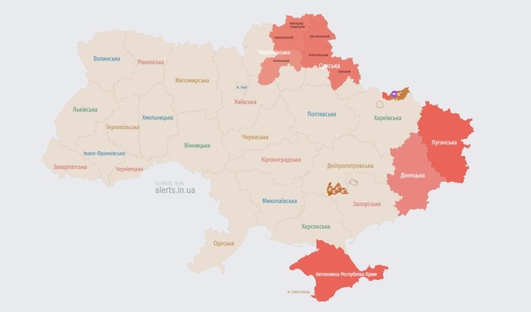 Саном на 16:00 ворожа атака триває, в повітряному просторі України на Чернігівщині та Сумщині фіксуються нові групи російських безпілотників.