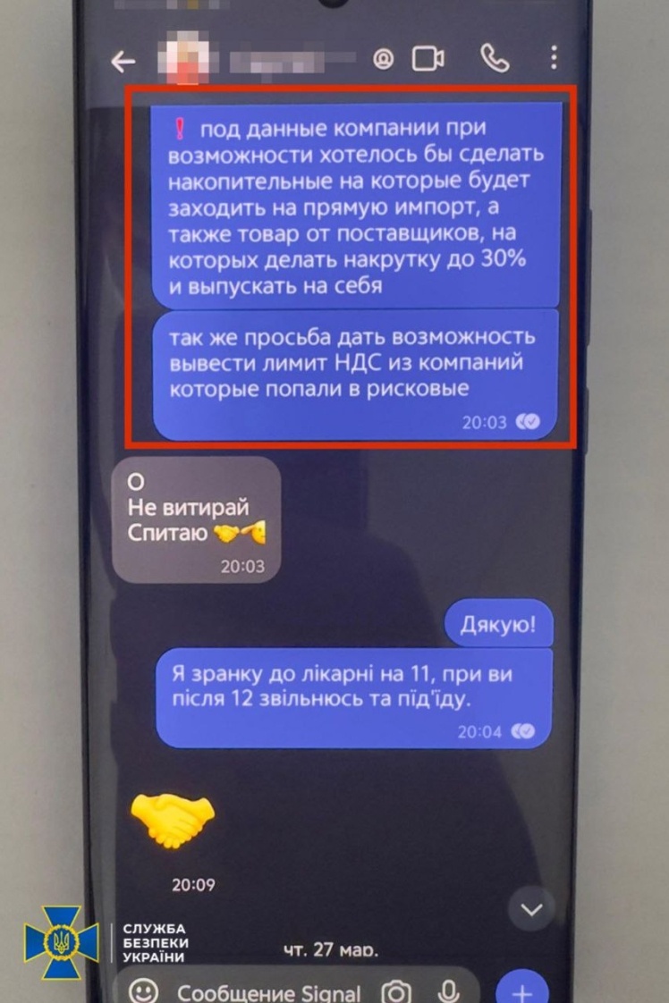 У листуванні йшлося про те, що Державна податкова служба України приймала незаконні рішення, зокрема щодо майже десяти компаній зі списку ризикових. Це мало дозволити зацікавленим людям проводити фінансові операції на приблизно 30 мільйонів гривень.