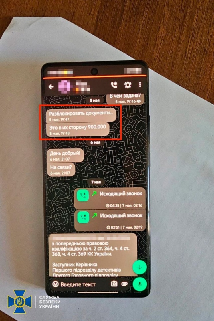 Слідство каже, що в обмін на цю «послугу» контакт пообіцяв передати високопосадовцю НАБУ неправомірну вигоду — 900 тисяч гривень.