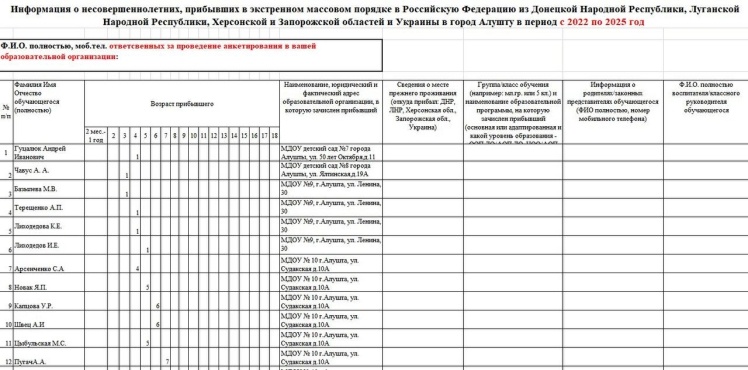 Велика кількість документів про незаконне переміщення українських дітей з тимчасово окупованих територій Донецької, Луганської, Херсонської та Запорізької областей. Розвідка отримала списки неповнолітніх, яких окупаційна влада вивезла до Криму та на територію РФ. Ідеться про анкетні дані дітей, дані на опікунів та місця їхнього проживання або навчання. Цю інформацію передали правоохоронним органам для розслідування воєнних злочинів щодо викрадених українських дітей.
