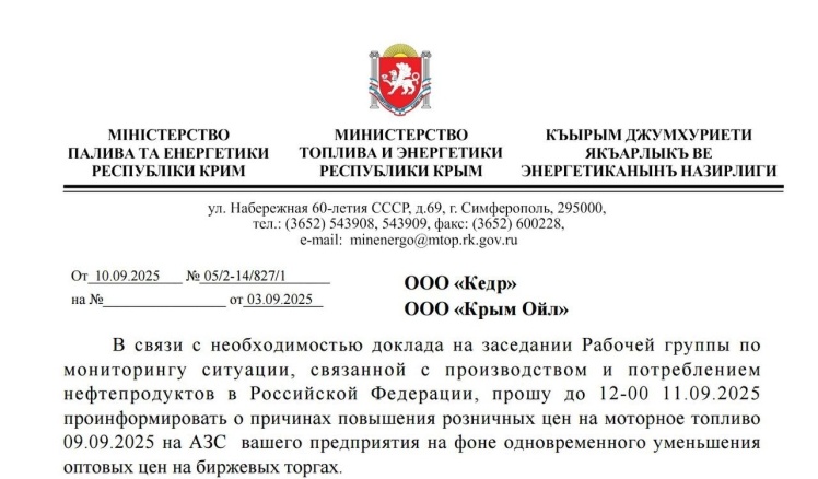 Окремі файли службового листування між міністерствами окупаційної влади Криму та документи про численні наради підтверджують факт дефіциту пально-мастильних матеріалів після ударів по російських НПЗ.