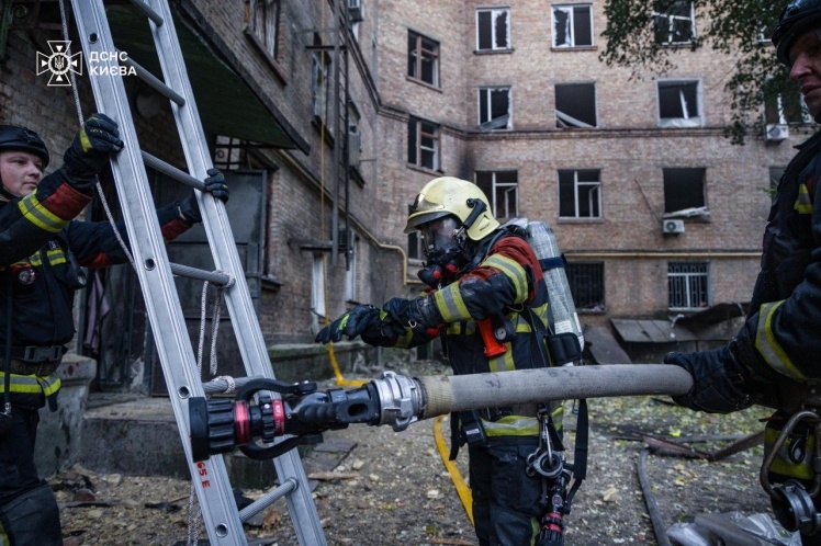 У Печерському районі впали уламки ракети на дах триповерхового житлового будинку, сталося загоряння та часткове руйнування 3 та 2 поверхів. Наразі медики госпіталізували одного постраждалого.