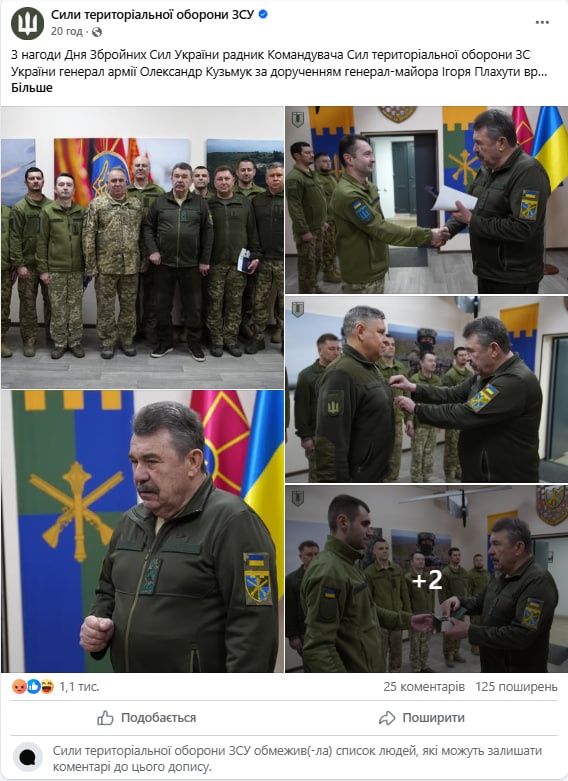 Зараз він привернув увагу, бо 6 грудня до Дня ЗСУ нагороджував бійців за дорученням командувача Сил Тероборони генерал-майора Ігоря Плахути. На сторінці Сил ТрО у Facebook закрили коментарі під постом про нагородження.