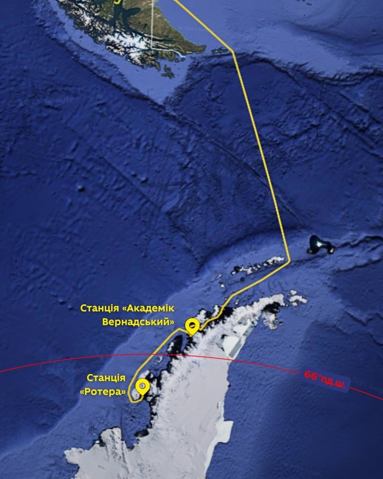 Антарктична станція «Академік Вернадський» розташована перед полярним колом. З неї почався маршрут «Ноосфери» на Південь — через полярне коло, затоку Маргарет-Бей на західній стороні Антарктичного півострова до британської антарктичної станції «Ротера» на острові Аделеїд.