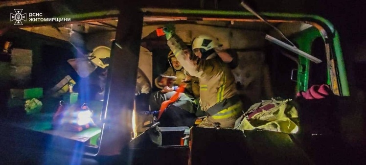 Неподалік Коростеня на Житомирщині з рейок зійшов вантажний поїзд, попередньо, через атаку дрона Shahed. На суміжній колії через екстрену зупинку також з рейок зійшов локомотив пасажирського поїзда Харків — Ужгород, машиніста і його помічника госпіталізували. Постраждали ще двоє залізничників, а одна пасажирка отримала поріз склом.
