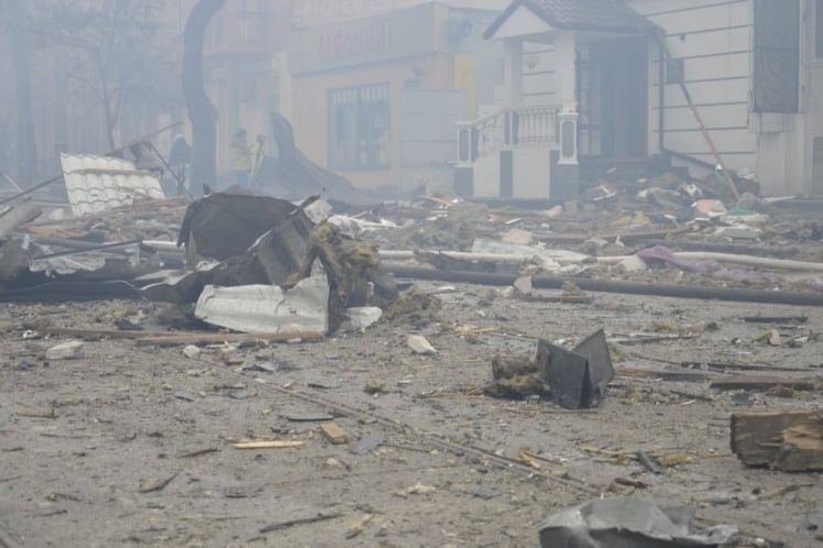 Крім того, унаслідок удару пошкоджено церкву, вибито скління в сусідніх будівлях, дитячий садок, ліцей, фітнес-центр, приватний транспорт. На кількох локаціях спалахнули масштабні пожежі.