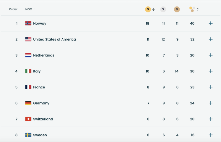 Для Норвегії це вже четверта поспіль перемога у медальному заліку зимових Олімпійських ігор. Востаннє команда не була першою у 2010 році у Ванкувері — там фінішувала четвертою.