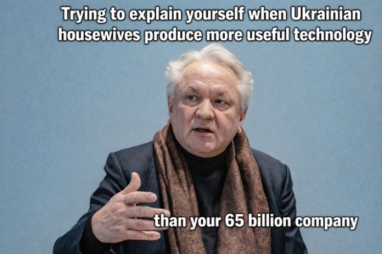 «Це як гратися з Lego. У чому інновація України? У них немає якогось технологічного прориву. Вони роблять інновації зі своїми маленькими дронами і кажуть: “Вау!” І це чудово. Ну і що? Але це не рівень технологій Lockheed Martin, General Dynamics чи Rheinmetall», — заявив він.