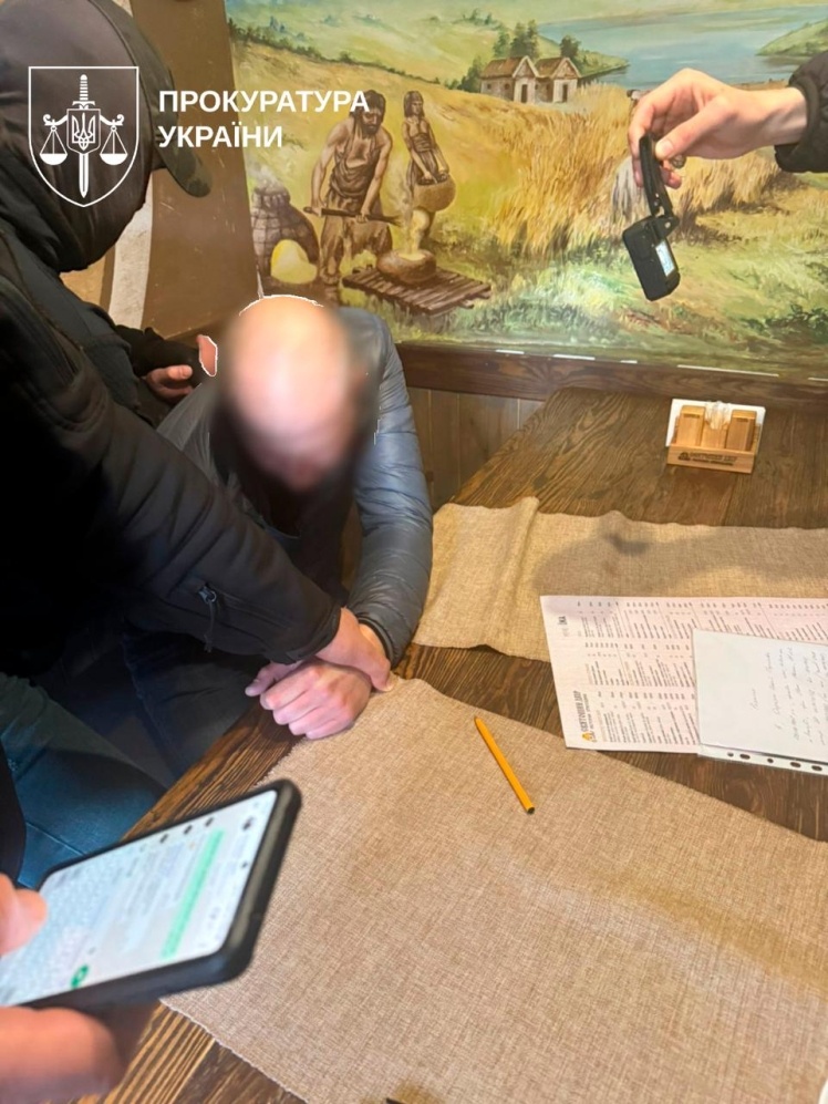 Ділка затримали під час отримання грошей. Під час особистих обшуків у нього вилучили готівку та розписку. Обшуки провели також на місці роботи та в авто.
