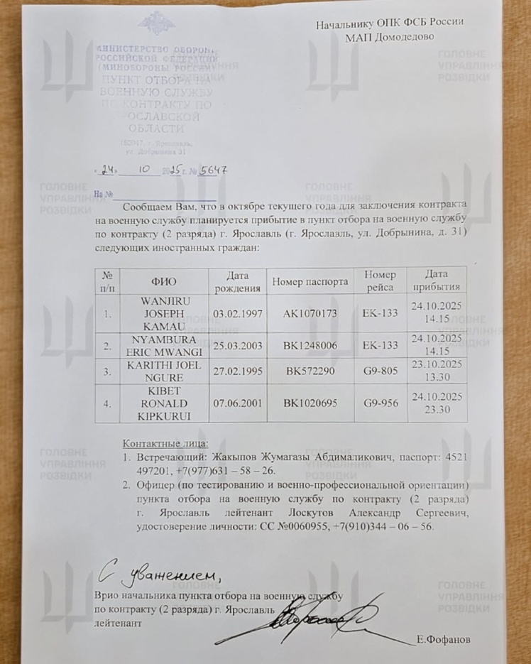 За інформацією української розвідки, попри домовленості Росії та африканських країн про те, що Кремль не вербуватиме їхніх громадян, встановлено дані 2 965 найманців, які все одно уклали контракт із ЗС РФ. Найбільше в російській армії найманців із таких країн, як Кенія, Єгипет, Камерун, Гана, Нігерія, Уганда, Алжир, Малі, Південний Судан та Південно-Африканська Республіка.