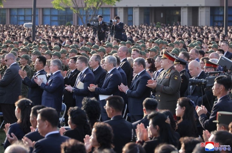 Під час церемонії звучали державні гімни Росії та КНДР, а Кім Чен Ин відзначив «стратегічне значення операції зі звільнення Курської області», в якій армії двох країн «в одному окопі билися пліч-о-пліч для захисту миру і суверенітету».