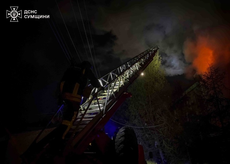 На Сумщині цієї ночі під атакою був Шосткинський район. Унаслідок атаки в житловому секторі зайнялися масштабні пожежі.