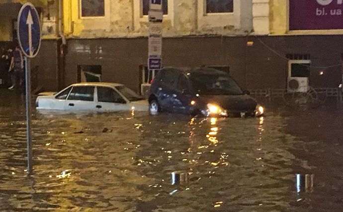 Внаслідок сильного дощу ввечері в суботу кілька центральних вулиць столиці затопило. Високий рівень води спостерігався на вулицях Басейній, Еспланадній, Антоновича і Казимира Малевича. Також затопило і автомобілі, які там знаходилися. Окрім цього, на вулиці Антоновича прорвало каналізацію.