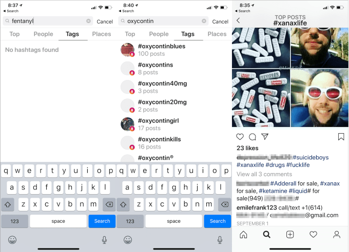 За даними американської Служби по контролю за захворюваннями, за минулий рік кількість смертей від вживання опіоїдів зросла з 10 до 30 тисяч. Збільшенню споживання наркотиків сприяли соцмережі, через які дилери продавали заборонені речовини. У квітні Instagram заблокував низку хештегів, під якими можна було придбати наркотики, але розповсюджувачі просто мігрували на інші посилання.
