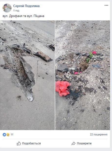 Снаряд від реактивної системи залпового вогню «Град» влучив в асфальтоване покриття дороги по вулиці Дрофаня в Ічні. Фото опублікував у спільноті «Підслухано в Ічні» Ігор Кирій. А Юрій Купченко опублікував фото снаряда на території місцевого РЕМу.