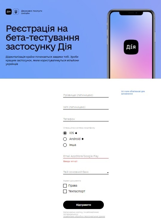У тестуванні програми можуть взяти участь 20 тисяч осіб. Для цього необхідно заповнити заявку, де потрібно вказати повне імʼя, операційну систему смартфона, номер телефону, адресу електронної пошти, свій основний банк та документи — водійські права або технічний паспорт.