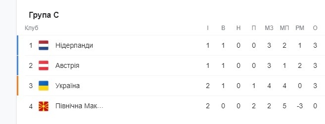 Таким чином, у своїй групі українці ділять друге-третє місце зі збірною Австрії. В обох команд по три очки. Австрійці зіграють свій матч увечері проти збірної Нідерландів.