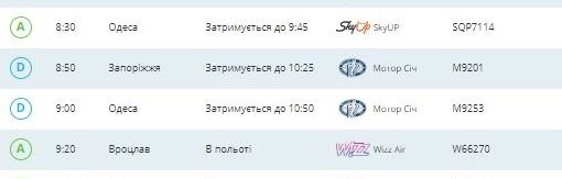 Отменены рейсы из польского города Быдгощ и египетского Шарм-эш-Шейха, задерживается самолет из Берлина, Запорожья и два рейса из Одессы.