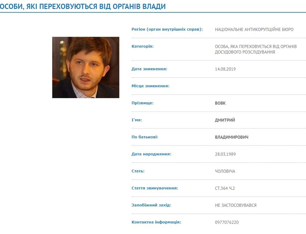 Бывший глава Национальной комиссии, что осуществляет государственное регулирование в сферах энергетики и коммунальных услуг Дмитрий Вовк, которого Национальное антикоррупционное бюро и Специализированная антикоррупционная прокуратура подозревают в причастности к нанесению 18,86 млрд грн убытков от внедрения формулы «Роттердам+», появился в розыскных учетах МВД. Соответствующие данные обнародованы на сайте Министерства внутренних дел.