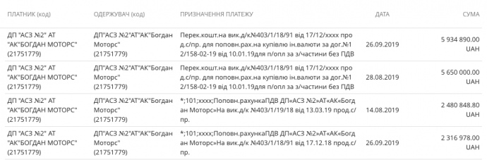 «Деньги перечислены со счета Государственной казначейской службы на частный счет «Богдан Моторс», открытый в ОТП банке. За что именно уплачены деньги — количество авто и стоимость за единицу — не указано», — рассказал Каневский «Экономической правде».