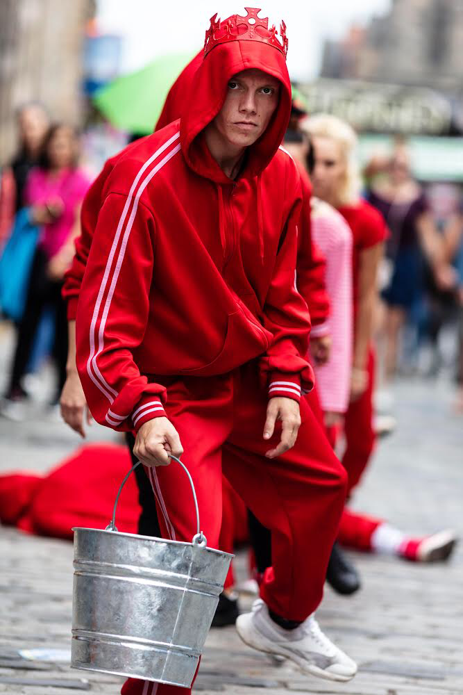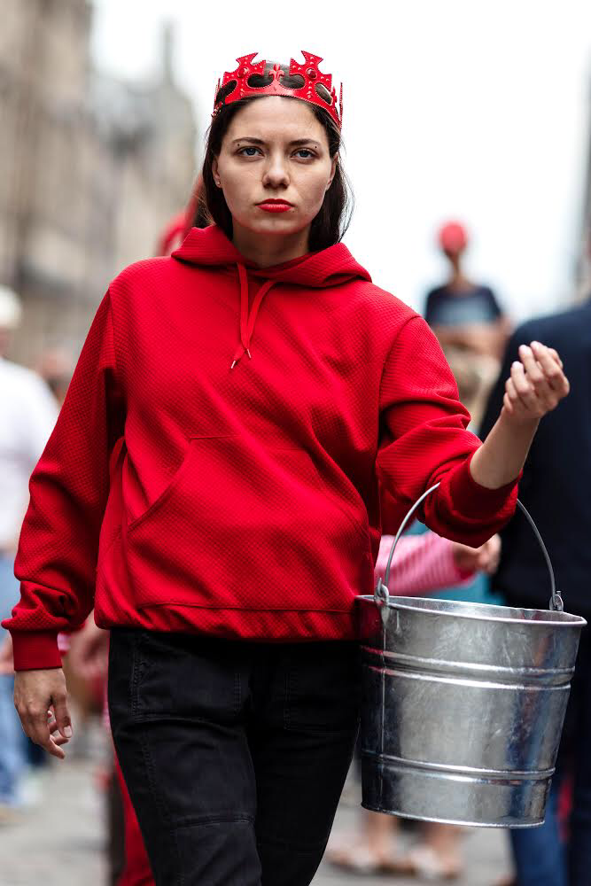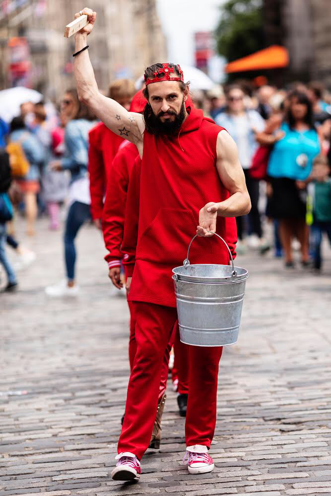 Большую часть времени «Мизантроп» тратил на рекламу собственного шоу. Расклеивали плакаты, вручали флаера. Но самое затратное по энергии и времени — промо-парад. Это ежедневные театральные шествия актеров на Королевской Миле, главной улице старого города и основной фестивальной зоне.