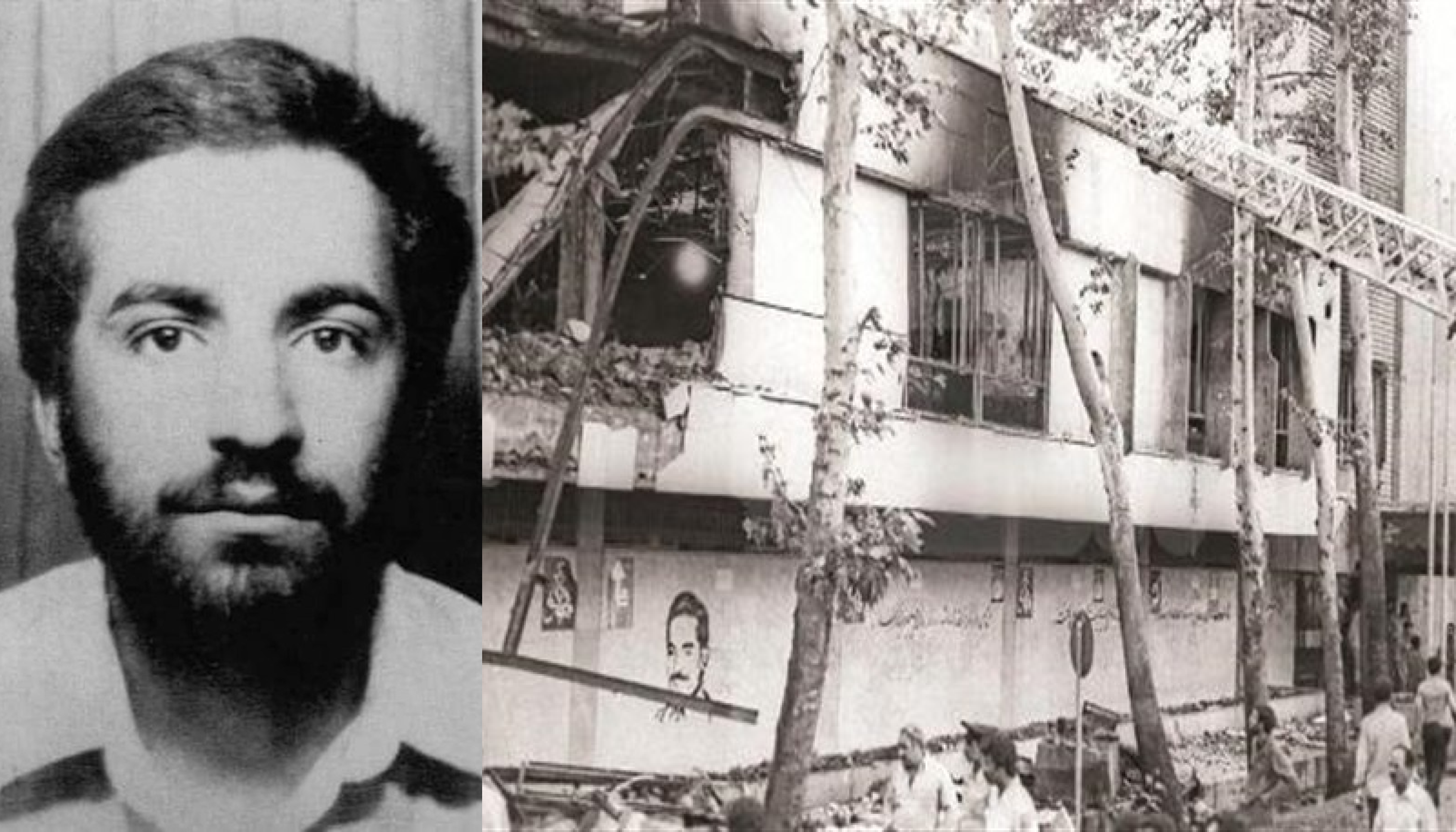 Мохаммад-Реза Колахі замолоду. Наслідки вибуху 1981 року.