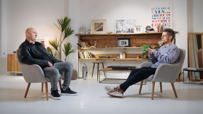 Чому Потап дає інтерв’ю російському журналісту. Якби я робив це для іміджу, то сказав би, що не розумію [російської] мови, і відмовився давати інтерв’ю… Українські політики й артисти в побуті й на роботі часто не соромляться говорити російською мовою. Але коли йдеться про інтерв’ю, про сцену — вони стають її противниками. Я доношу проукраїнську позицію іншими мовами… Я даю інтерв’ю іншій аудиторії [Юрія Дудя], щоб донести їй проукраїнську позицію.