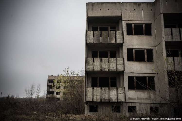 Частина вже майже збудованих кварталів Белене для атомників стоять закинуті. Вʼїзд на територію АЕС.