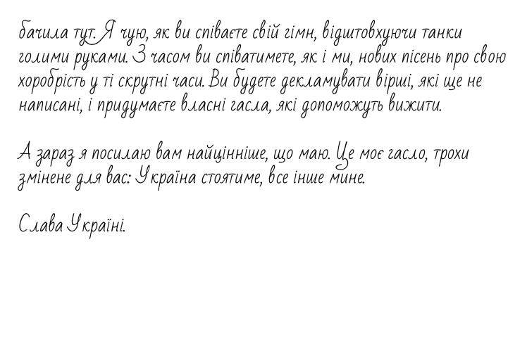 Лист Аїди Черкез до українців, який вона написала на початку березня 2022 року.