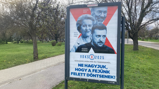 За такими ж принципами й метою в Угорщині проходили консультації щодо прав сексменшин і впливу Брюсселю, а в понеділок розпочалось онлайн-голосування в новому псевдореферендумі із запитанням, чи дозволяти Україні вступати до ЄС. Як завжди, уряд має відповідь ― звісно, не дозволяти. Вулиці угорських міст заполонила урядова реклама з портретом Володимира Зеленського і закликом «не дати їм вирішувати через нашу голову». В інтернеті та на телебаченні зʼявились ролики, де, наприклад, закадровий голос каже, що «ціну за вступ України доведеться платити нам». Також Орбан часто запевняє, що якщо зруйновану війною Україну приймуть до ЄС, усі гроші, які раніше з європейських фондів отримувала Угорщина, підуть на відновлення нового члена євроспільноти. Орбан уже проголосував в опитуванні ― передбачувано проти.