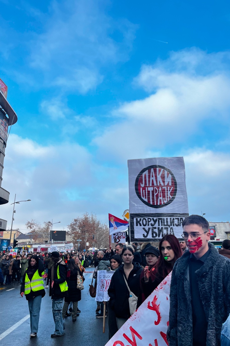Перші акції почалися в Новому Саді відразу після трагедії, в листопаді 2024. Спершу там збиралися активісти, журналісти й просто небайдужі люди. Вони були злі на уряд — хотіли показати, що їм набридла корупція і брехня влади. Згодом ініціативу підхопили студенти.