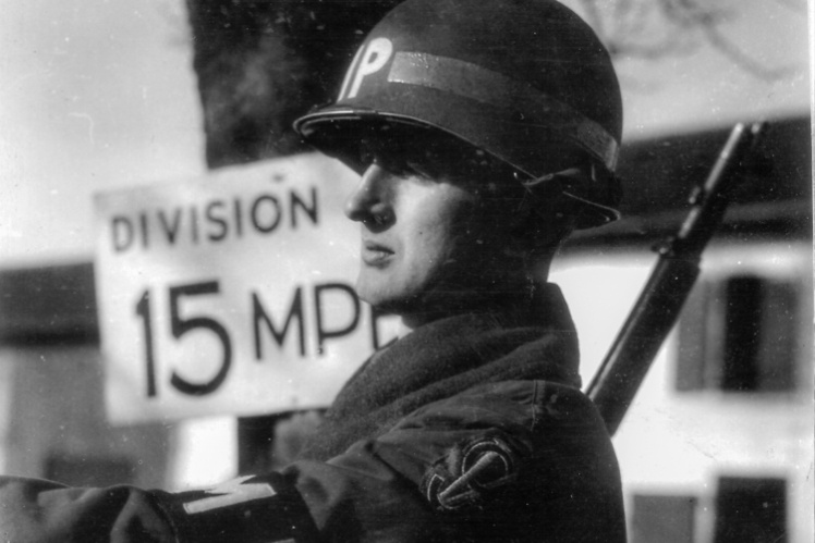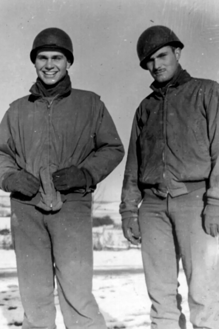 Білл Бласс (ліворуч) і Боб Томкінс, який до війни працював рекламником, у лавах «Армії привидів», 1944—1945 роки. Берні Блуштейн під час служби в «Армії привидів», 1944—1945 роки.